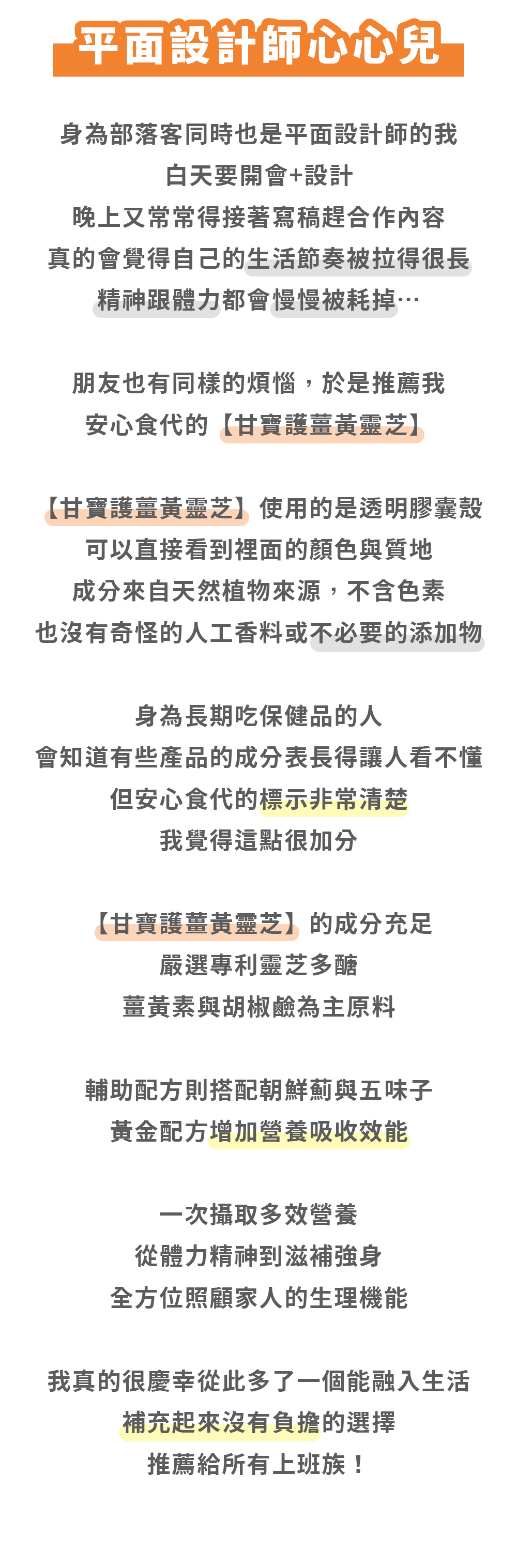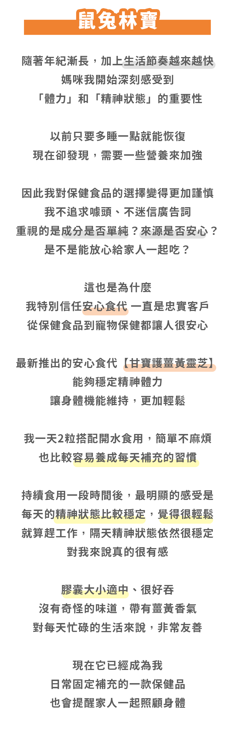 安心食代:為家人研發的安心保健品